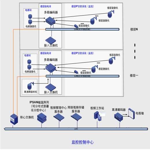 隨著新技術的發展以及人們的安防意識和要求的提高,智能樓宇安防系統產生了數字化、高清化、集成化、智能化的需求。未來,全數字監控系統是發展趨勢,而像圖像智能分析技術、人體生物識別技術等新技術也會逐漸被應用到智慧樓宇中。 【智慧樓宇安防建設概況】 “科技提升建筑價值”不斷得到使用單位的認可,尤其是商務樓宇,為了體現價值,紛紛加大智能化建設力度,打造5A智慧建筑。樓宇安防是智能化系統的主要組成部分,智慧樓宇安防包括視頻監控、防盜報警、出入口控制、電子巡查管理、樓宇對講、安檢排爆等。 安防系統從單個產品及小規模系統應用發展到現在的大型、復雜的綜合安防系統,無論是應用范圍、系統規模和復雜程度都大幅提高。隨著網絡化、智能化時代的到來,在各安防系統一體化管理、智能判斷及聯動反應要求的驅使下,樓宇安防系統由傳統安防到智慧全數字化安防發生了質的變化。 智慧樓宇安防是以網絡系統為基礎支撐,各數字化安防系統為感知,安防綜合管理平臺為核心的融合應用,實現真正有效的一體化管理。智慧樓宇安防從數字化視頻監控、網絡化聯網報警、網絡化門禁等系統,拓展到與更多的先進技術相互融合,如智能視頻分析、無線RFID識別與定位、智能家居等新技術和應用。 【智慧樓宇安防系統的新需求】 隨著新技術的發展以及人們的安防意識和要求的提高,智慧樓宇安防系統產生了數字化、高清化、集成化、智能化的需求。 以視頻監控系統為例,經歷了第一代全模擬技術、第二代模擬與數字化相混合,進入到第三代全數字化安防系統,同時也融入了更多的網絡化應用。目前隨著IP攝像機的成熟和網絡的普遍使用,全數字視頻監控系統必將成為將來的發展趨勢。高清攝像機分辨率的提高使基于視頻的智能分析變得越來越易實現,高清帶來的豐富的信息量降低了由于傳統模擬攝像機圖像不清晰所帶來的誤報,同時也為智能分析奠定了最基本數據基礎。遮蔽檢測、移動偵測、遺留物品檢測、車輛逆行、人員非法入侵、人流統計等智能分析功能已經廣泛應用于多個領域,而智能分析功能的廣泛應用也增加了對網絡高清攝像機的需求。 【數字監控技術在智慧樓宇安防中的應用經驗】 智慧樓宇安防包括數字監控、智能視頻分析、無線RFID識別與定位、智能家居等很多先進的新技術。下面主要介紹數字監控技術應用的經驗。 目前的數字監控技術主要有模擬與數字化相混合(又稱半數字化的監控系統)及全數字化安防系統兩種模式。 混合數字監控系統的優勢 模擬與數字化相混合的數字監控系統,是采用前端模擬攝像機+編解碼器+后端數字處理技術的監控系統,即前端攝像機仍保留為傳統的模擬攝像機,模擬視頻信號通過編碼器轉換為數字信號進行傳輸的視頻監控系統。 系統組成如下圖1所示: